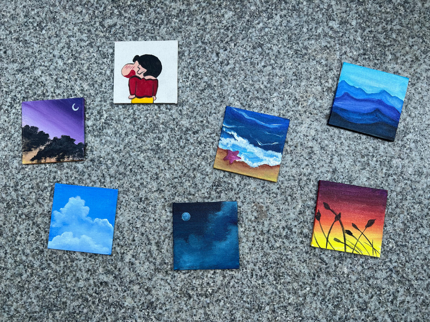 Brighten your desk with our 4" square canvas Desktop Painting. This handmade acrylic artwork features intricate details and comes with a free easel. Enhance your workspace with a touch of creativity today!