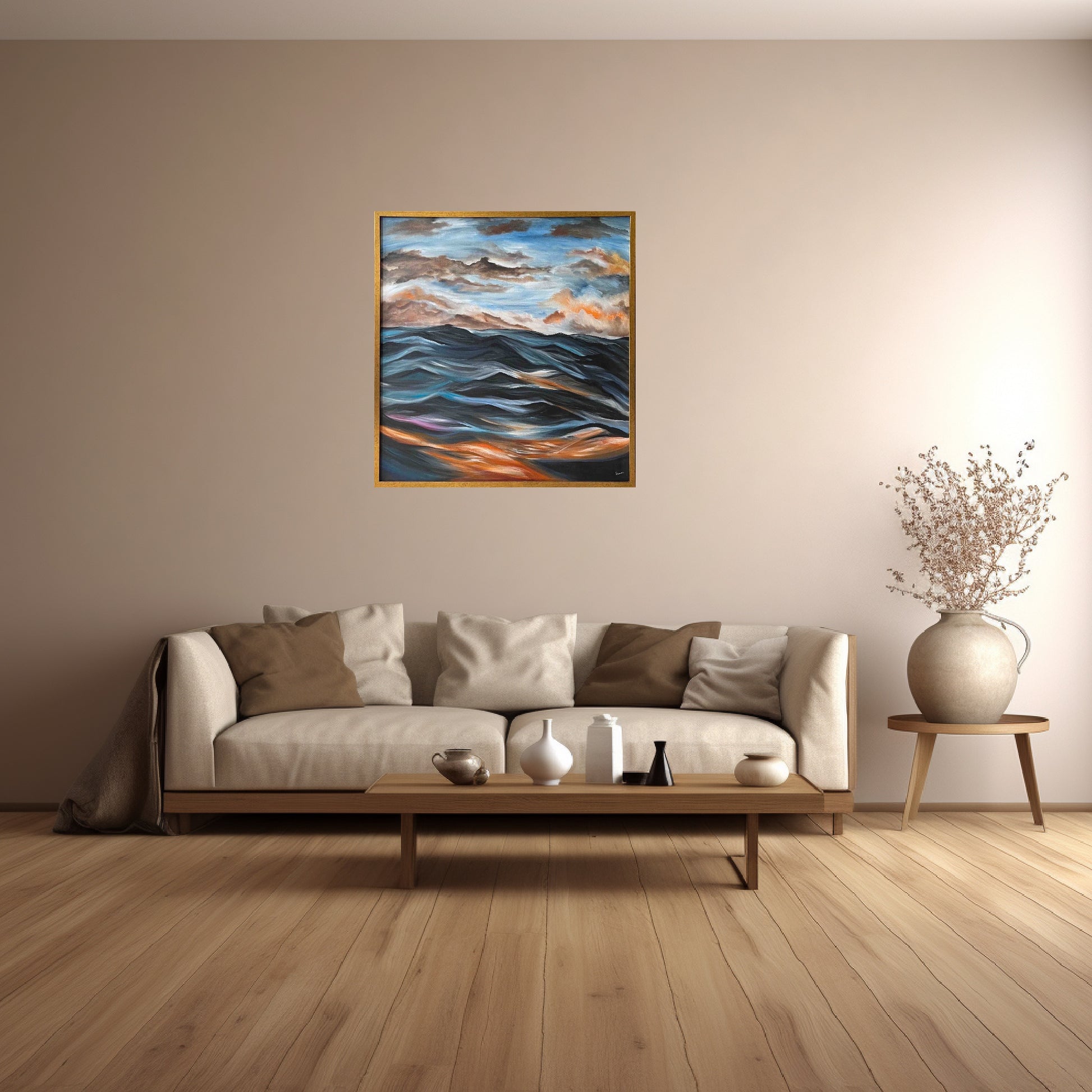 Acrylic paints were selected for this piece due to their remarkable qualities, allowing the artist to achieve rich, long-lasting colors that won't fade over time. The versatility of acrylics permits both bold, textured strokes and delicate, nuanced details, making them the ideal medium for capturing the ever-shifting beauty of the sea.