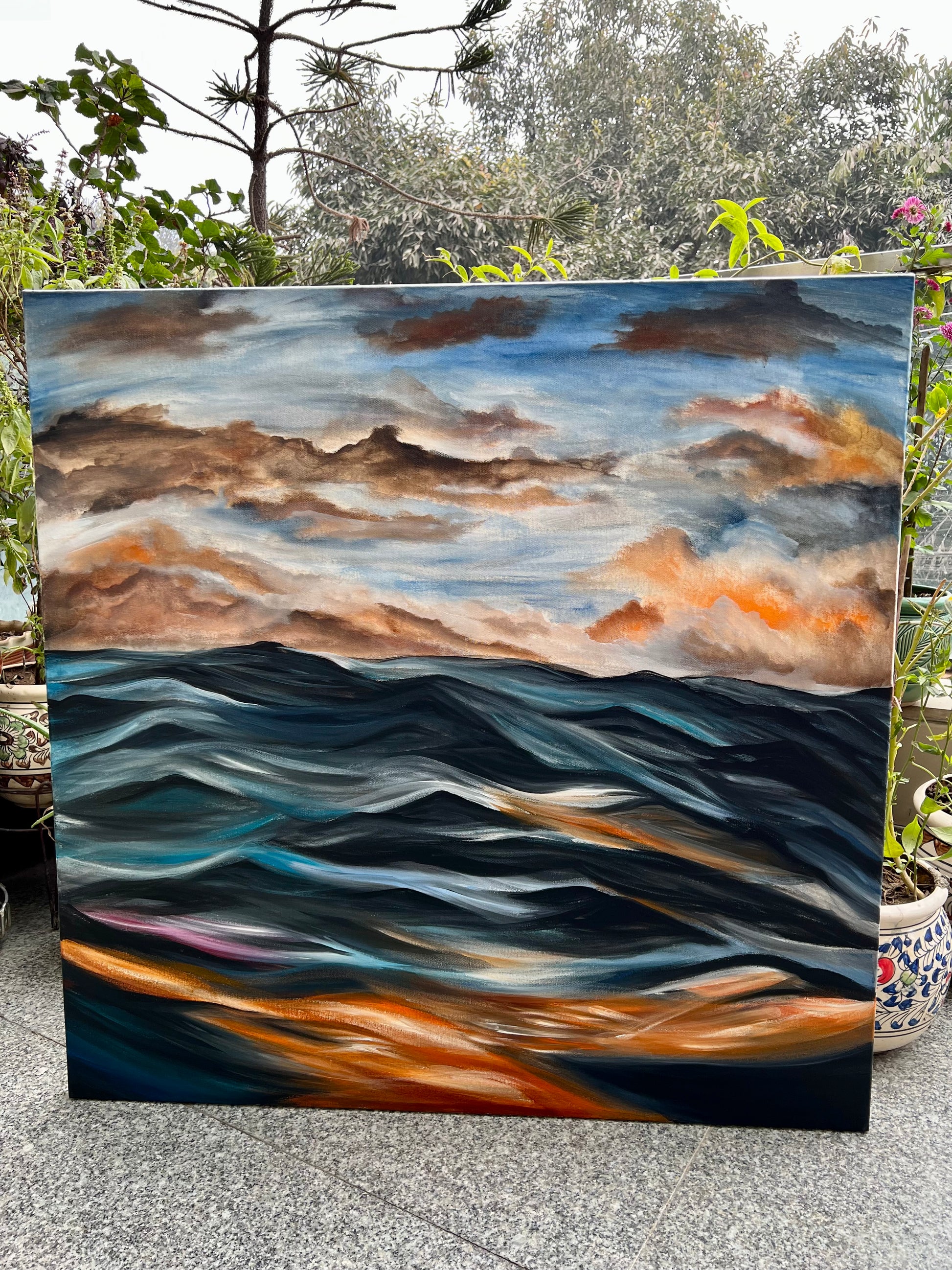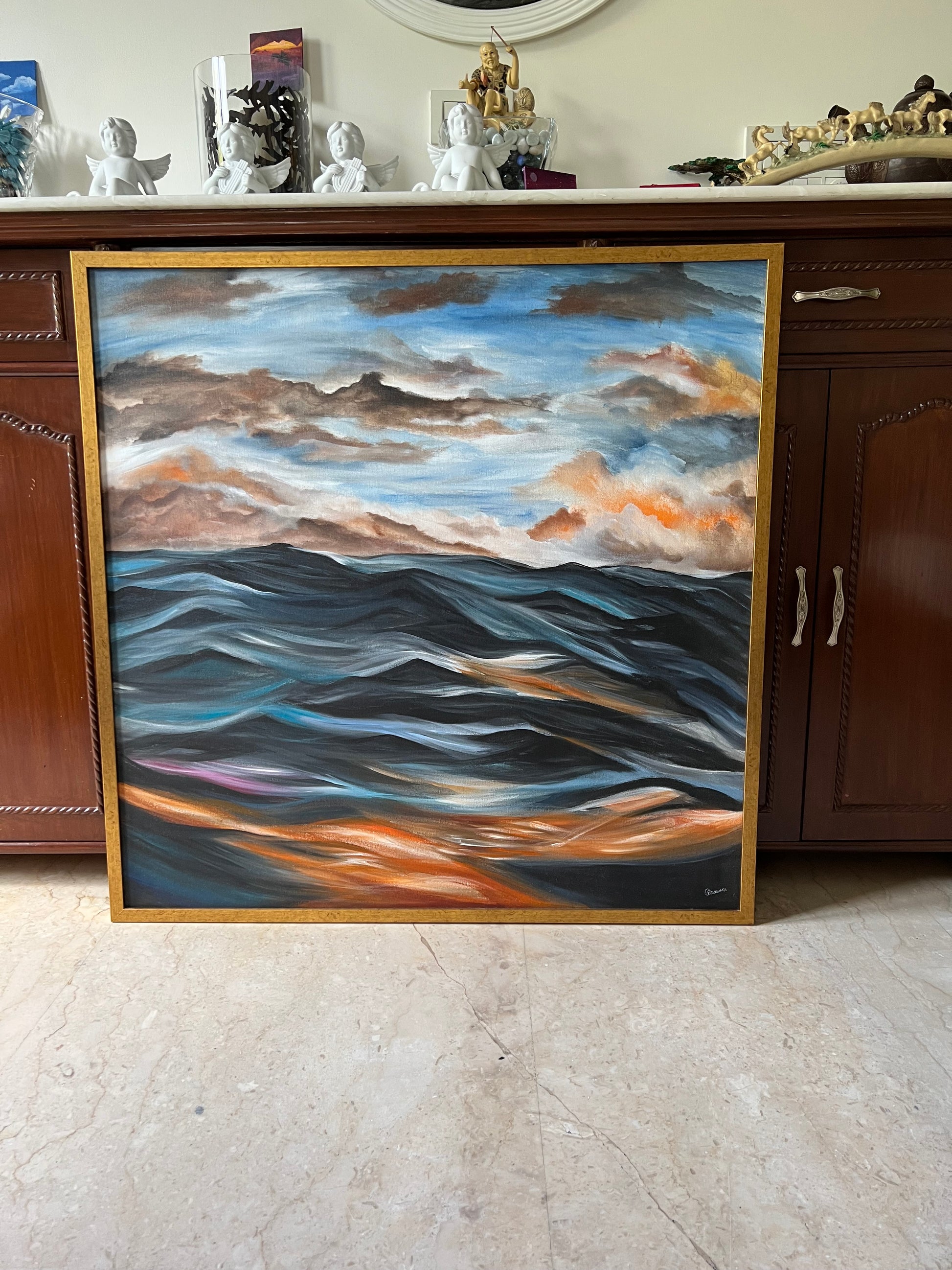 The artist's intricate brushwork and vibrant acrylic pigments bring to life the dynamic interplay of light, water, and atmosphere, capturing the essence of the sea's ever-changing colors and moods. From serene blues to fiery sunsets, each brushstroke is a reflection of the artist's deep connection to the natural world.
